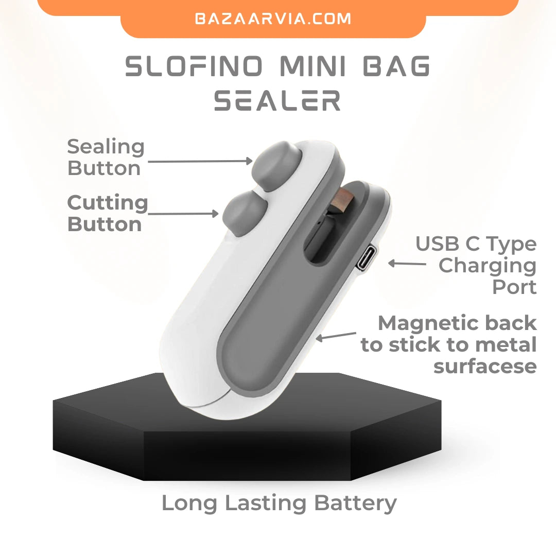 The SLOFINO™ Sealer is designed for the modern, busy household. Simply place the sealer on the open edge of a bag, press down, and slide to create an airtight seal in seconds. Use it to seal your snacks after a long workday, store leftovers from last night’s dinner, or keep your veggies fresh. It’s small enough to fit in your bag to take it anywhere, whether you’re packing lunch for the kids or on the go to the office. Say goodbye to messy clips and twist ties. With a quick and easy seal, your food stays fresh, and your kitchen stays organized.